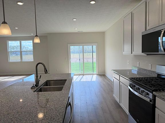 Multi use loftVersatile flex living spacesBlanco perla granite countersFull front porchPendant lightingBenton white cabinetsLarge backyard