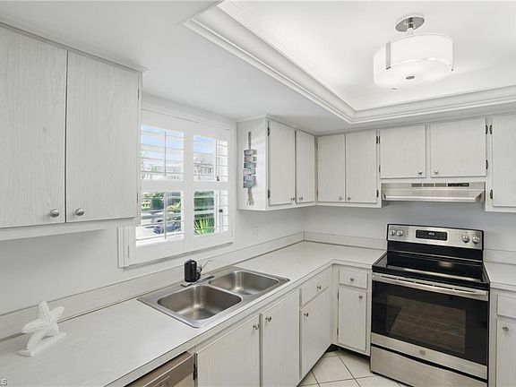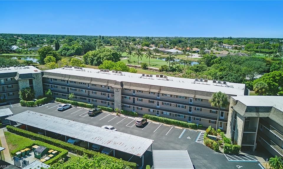 Amazing, SERENE WATER VIEWS from this SECOND FLOOR - 2-bedroom, 2- bath condo with 1,071 sq. ft of living space... Ideally located just a short drive from the beautiful beaches of Naples, Florida. LOW CONDO FEE INCLUDES CABLE AND INTERNET!! The KITCHEN has stainless steel appliances, and a CONTEMPORARY DESIGNED trayed ceiling with new lighting fixture....The primary bedroom suite has an oversized closet and ensuite bath...The GUEST SUITE has a pocket door separating it from the main living area with adjacent guest bath. Updated ALL TILE FLOORING - easy-to-care-for in every room...This unit also has a rear screened lanai overlooking a waterway, golf course and incredible BIRD WATCHING!! PLANTATION SHUTTERS throughout gives this condo a very modern appearance...BONUS: an assigned covered carport!! Enjoy the convenience of being next door to a PUBLIC GOLF COURSE...just bring your clubs! Nearby is Naples 5th Avenue shopping and dining …Marco Island is also just a short drive away for more beach and water adventures, dining, and entertainment. Whether you like shelling on the beautiful Florida beaches, GOLFING, or just sitting with friends around the pool, this condo offers the perfect blend of comfort, location, and lifestyle....55 + Community...Buyer to verify all information.