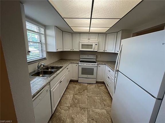 55+ and older community (must be 55 or older). Tastefully UPGRADED unit with a FABULOUS VIEW of the Hibiscus Golf Course and backing onto a canal. Enjoy sunsets from the tranquility of your own lanai. This unit has newer vinyl floors in living area and master bedroom, tile in kitchen and bathrooms, carpet in second bedroom only. Electric shutters, laundry in unit, NEWER VANITIES, upgraded kitchen cabinets, newer light fixtures, HUGE WALKING CLOSET in the master bedroom and much more. And what a great LOCATION! Minutes from downtown, and Naples shopping and dining, this community offers a beautifully appointed pool and Club House with lots of activities. No Pets. Welcome to Paradise!