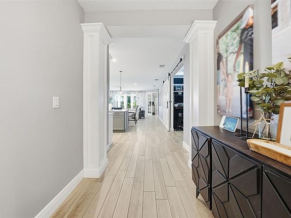 Welcome to this beautifully maintained 4-bedroom, 3-bath home with a spacious bonus room that’s perfect for a game room, media space, or home office. With nearly 2,500 square feet, this thoughtfully designed floor plan offers the ideal balance between open-concept entertaining and comfortable privacy for everyone. The kitchen features upgraded stainless steel appliances—including a refrigerator that makes craft ice for cocktails, making it a great space for gatherings and everyday living alike. Custom accent walls add warmth and character throughout, and the owner’s suite boasts a walk-in closet with custom cabinetry. Step outside to your own private retreat with a screened-in pool overlooking peaceful conservation and lake views. The preferred lot provides privacy and a beautiful backdrop for morning coffee or weekend entertaining. Solar panels on the roof will be paid off at closing, giving the new owner the benefit of reduced energy bills. This home is in excellent condition and truly move-in ready.