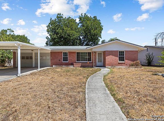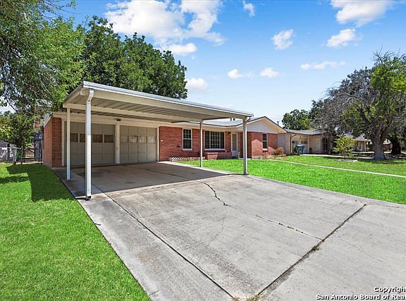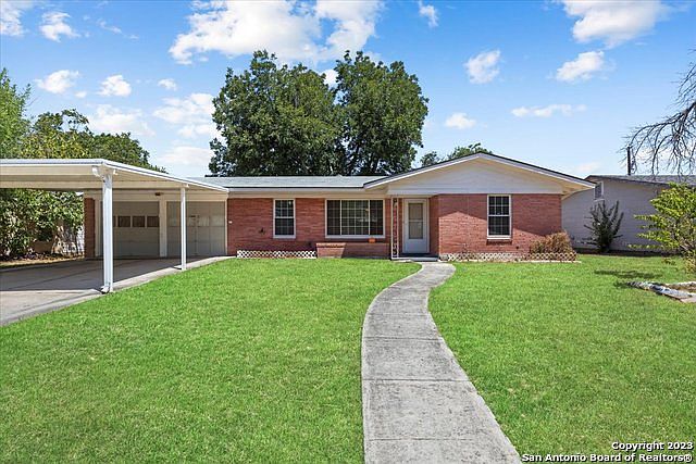 Welcome to your next home. This is a beautiful 2 bedroom 2 bath home with a very nice floor plan. It is located convenient to Fort Sam Houston and Randolph Air force base. It is an older home with fresh paint inside and out. The charm is ceramic tile in both bathrooms and the kitchen that is in great condition. There is a spacious 2 car garage with electric garage door openers as well as a covered carport in front of the garage, The yard is very spacious and there is a very nice storage shed in the backyard that is on a slab and has electrical outlets and is lighted. The backyard is fenced. All windows have been updated to double pane windows. The water heater is new.