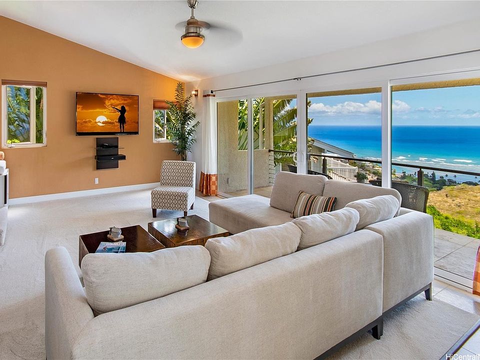 The property boasts a flexible layout while being surrounded by lush landscaping and gorgeous ocean views.