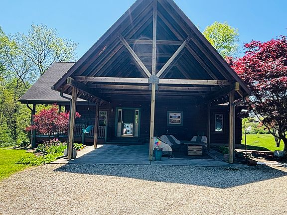 Charming Custom-Finished Log Home on 11 Acres with Guest House & Trails. Nestled in the heart of serene countryside, this custom-built 2 BR, 2 BA log cabin blends rustic charm with modern comfort. Set on 11 private acres, the home welcomes you with a spacious open layout, large windows, and a wraparound deck and patio- perfect for entertaining or unwinding in nature. The main level features a primary bedroom with double closets, access to a beautifully updated full bath with a tub/shower, and a convenient laundry room. Upstairs, a cozy loft overlooks the living and dining areas and opens into the 2nd Bedroom and a full Bath. A separate guest suite, 1BR/1BA, off the garage offers versatile use- as a home office, guest quarters, or income-generating rental. This 11 acre property includes a large yard, tranquil streams, and a scenic trail system that winds through rolling woodlands, providing a nice hike outside your back door. 20 minutes to Brookville Lake/Egypt Hollow Boat Ramp. See this beautiful home before it's gone!