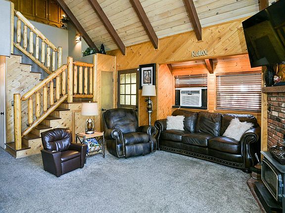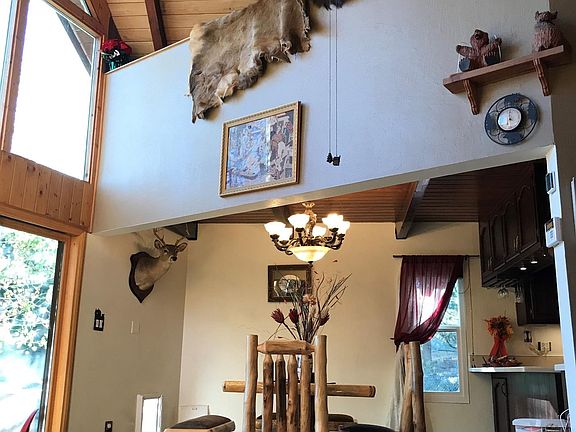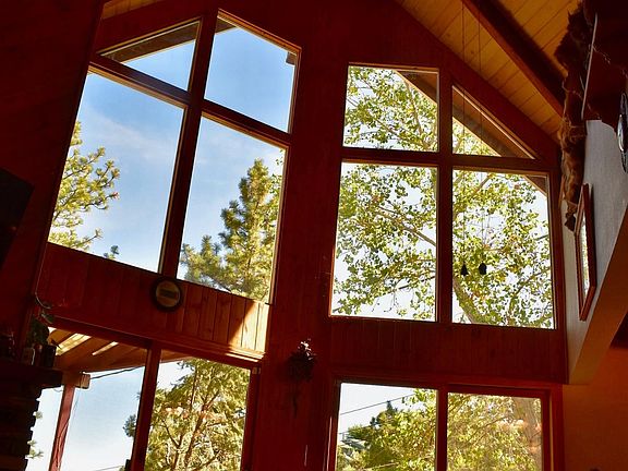 High in the San Gabriels, this 3 bed 2 bath Swiss Chalet-style dream home is ideal for all of Wrightwood's scenery. With traditional wrap around deck and soaring windows, the Swiss Chalet-style originated in late 18th century and was appreciated by noble landowners impressed by the simple life of people in the mountains. You'll first notice the NEW MAINTENANCE FREE METAL ROOF which makes your Chalet energy efficient, safer in harsh weather, decreases energy costs, can lower HOI rates and will never have to be replaced. The living & dining spaces combine to create a dramatic Cathedral ceiling with brick fireplace and insert, open country kitchen, seated breakfast bar, & view of the Mojave through your floor-to-ceiling windows. Also on the main floor are a big bedroom, full bath & convenient laundry area. Upstairs is the Master Suite with walk-in closet, a 3rd Bedroom & full bath which are connected by Swiss-style exterior balcony, complete with gorgeous views of the alpine terrain. There's also a bonus loft with High Desert views completing the elegant feel & gorgeous scenery. Outside, an extra-large 16,000 sq ft lot, 2-car garage, partially finished bonus room, RV parking, fully fenced, no flood zone, near shopping, restaurants & 5 min. from famous Mtn. High Ski Resort. Other upgrades include 2 new skylights over master, newer septic tank, new water heater & new HV/AC. Come see this Swiss Chalet where turn key conditions and gracious living can be yours in Wrightwood.