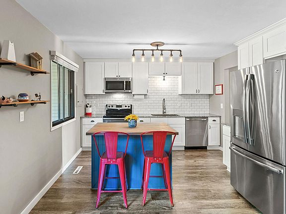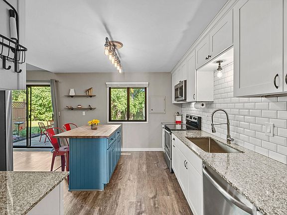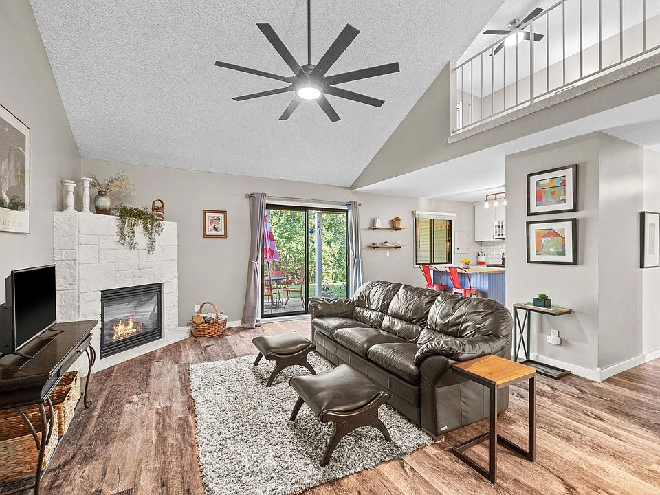 Beautifully updated and well-maintained loft-style townhome with an open concept. The kitchen features stainless steel appliances, high-end countertops, a butcherblock island, and modern light fixtures. The vaulted living room has a wood-paneled accent wall, luxury vinyl planking, and a gorgeous built-in gas fireplace. This unit also features a convenient half bath on the main level and a back deck (off the 2nd bedroom) with serene views of the woods and the pond. Conveniently located near a multitude of amenities and easy highway access. Only available due to relocation!