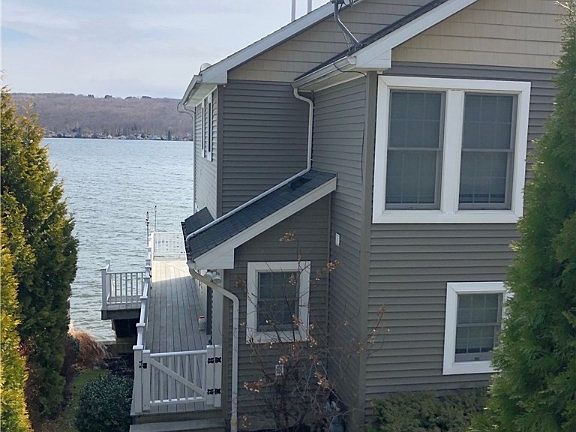 Here it is! Most inviting, Contemporary Colonial,custom well built house, walls of windows overlooking Conesus lake from Great room and kit/din room! 4 bedrooms,3 baths, family room/ movie room, 2300 square feet! extra lot across the street for more parking( or garage with town approval) all appliances remain, a must see!! Dock included! Great water level! NO FLOOD INSURANCE!