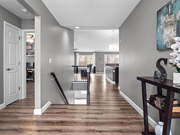 This beautiful ranch home with a split bedroom floor plan sits on arguably one of the best lots in the desirable Amberleigh Woods subdivision. Luxury vinyl plank flooring flows throughout the main level (no carpet) of this gorgeous open floor plan home with vaulted ceilings and an abundance of natural light. The kitchen features upgraded 42" dark cabinetry, stainless appliances, tile backsplash, and granite countertops. Mudroom in between the kitchen and oversized fully insulated 3 car garage (4ft extension). The primary bedrooms boasts a large walk in closet, bay window, and luxury bath with separate tub and shower, double sink adult height vanity, and linen closet. The other 2 bedrooms sit at the front of the home. Walk out to the deck from the dining room that looks over the amazing private yard backing to woods. Full sprinkler system. The full walkout lower level is ready for your finishing touches with a 9ft pour, egress windows, and rough in bath already in place.