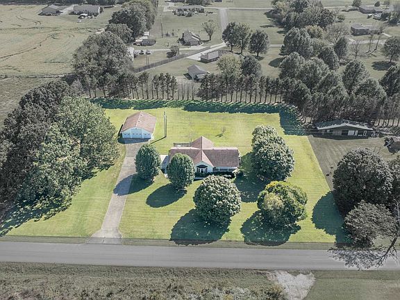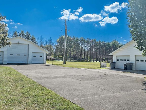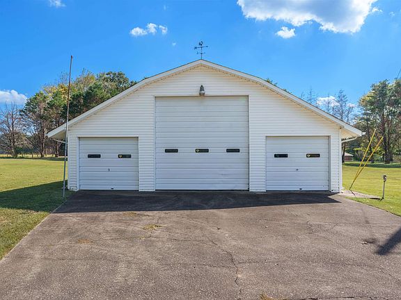 Charming 2 bed, 2 bath home on 2 acres, designed as a second home by a retired couple. Enjoy a spacious open floor plan with a large kitchen island perfect for entertaining, open to the dining area and living room with built-in cabinets. Bright and airy sunroom offers extra living space. The primary suite features a generous bedroom and a luxurious bath with a large, no-step tiled walk-in shower. Second bedroom is also spacious. Large laundry room includes a utility sink. Attached 2-car garage plus a massive 1,450+ sq ft detached garage with 3 doors, loft storage, wall heater, and window A/C which is perfect for a RV, hobbies, or a workshop.