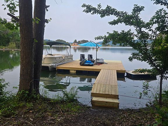 Beautiful Lake Home with 20 x 30 floating dock with added stabilization and walkway - water at dock is 14 - 15ft deep throughout summer months.
