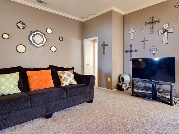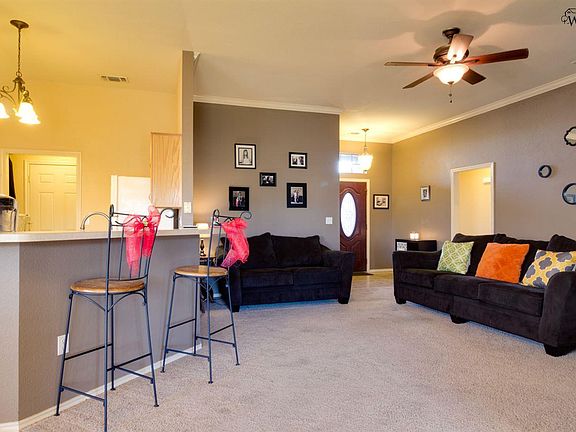 Immaculate home beautifully finished and move in ready! Nice entry way opening to large living room with crown molding. Spacious kitchen with nice counter top space, pantry, and breakfast bar open to living and dining area. Isolated master bedroom, master bath has double sink vanity, and two walk-in-closets. Back yard featuring covered patio, privacy fence and storage shed. Two car garage, security system, and more! Conveniently located just 12minutes to SAFB and close to entertainment and shopping.
