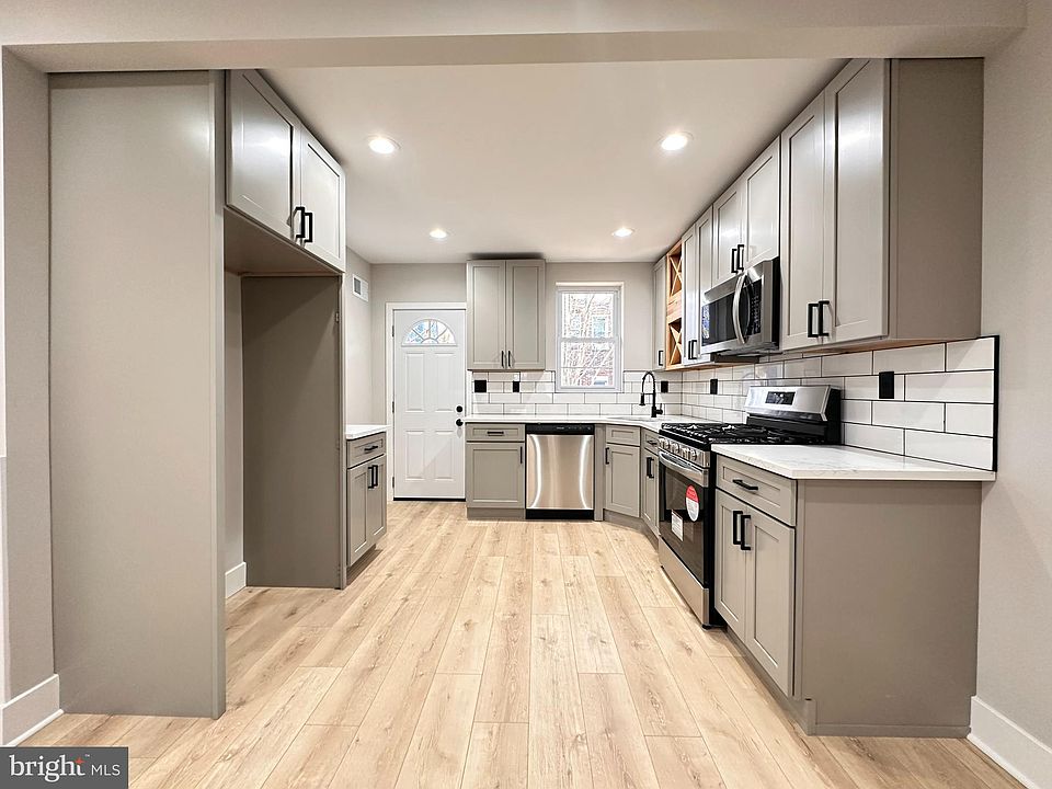 Welcome to this exquisite four-bedroom, 2 1/2 bathroom home nestled in the desirable Kingsessing area. Meticulously renovated with thoughtful finishes throughout, this home seamlessly blends modern luxury with timeless charm. Upon entering, you're greeted by an inviting open floor plan with an expansive living and dining space leading you to an open chefs kitchen. The kitchen boasts modern style cabinets, elegant stone countertops, and state-of-the-art stainless steel appliances, making meal preparation a joy. Natural light floods the space through ample windows and doors which floods light directly into kitchen creating a feeling of warmth and peace. Envision your perfect outdoor oasis on the potential rear deck, perfect for morning coffee or evening relaxation. The home's lower level is a versatile space, offering a finished basement complete with laundry and 4th room or office, ideal for guests, extended family or roommates to enjoy privacy while helping cover expenses. . The principal bedroom is a true sanctuary, boasting double closets with sliding glass doors for ample storage, large windows that adds a unique touch of character and charm and his private master bathroom. An other three great size bedrooms with an other bathroom are perfectly located next to the master bedroom. Located on a charming block, this home offers both convenience and tranquility. Situated on the one of quietest blocks in the area, enjoy easy access to transit routes and local conveniences such as shops, restaurants and green spaces. Seller is motivated to consider your offer. Schedule your showing today!