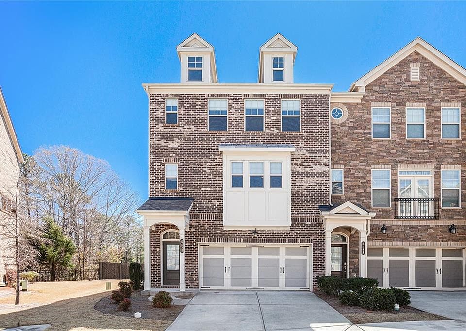 Welcome to this stunning end-unit townhome that combines modern design, thoughtful layout, and a prime Peachtree Corners location. Step into the home through a dramatic two-story foyer that sets the tone for the spacious and light-filled interior. As you ascend to the main living area on the second floor, you'll be greeted by an open-concept layout featuring a generous family room, dining area, and a chef-inspired kitchen. The kitchen is equipped with top-of-the-line appliances, including a sleek cooktop, wall oven & microwave. A large island with ample seating and an abundance of cabinetry makes this space perfect for both everyday living and entertaining. Natural light floods the home from both the front and back, thanks to large windows throughout. On the third level, you'll find a luxurious primary suite with a spacious walk-in closet, dual vanities, and a spa-like bath featuring a large walk-in shower. Two additional bedrooms share a full bath, and the laundry room is conveniently located upstairs for easy access. The main level offers a private bedroom with a full bath and closet—ideal for guests, a home office, or multi-generational living. As an end unit, this home offers additional privacy, extra windows, and a more open feel. With modern finishes, a smart layout, and unbeatable location, this home is a must-see for today's discerning buyer. 100% Financing Available! Don’t miss out on this fantastic opportunity.