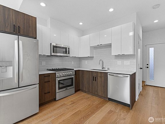 Modern design and efficient layout define this 2021-built West Seattle townhome. Featuring 1 bedroom and 1.75 baths, the home offers a sleek kitchen with two-tone cabinetry, quartz counters, and stainless steel appliances. Enjoy tall ceilings, wide-plank engineered hardwoods, and great natural light throughout. A rooftop deck provides a quiet retreat—ideal for morning coffee or evening unwinding. Other highlights include a split A/C system, full-size LG washer/dryer, and no HOA dues. Located near parks, shops, transit, and Westwood Village. Stylish, move-in-ready, and perfectly situated. Don’t miss this turnkey opportunity!