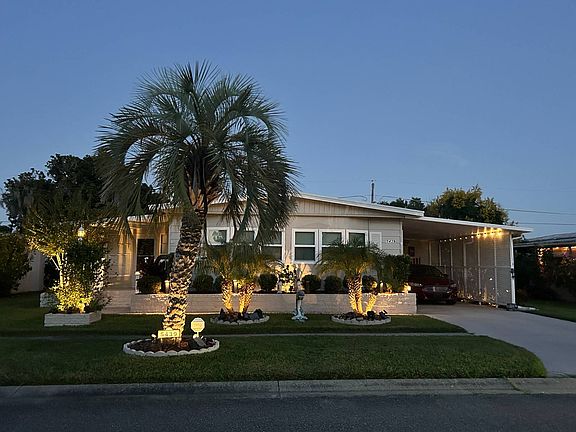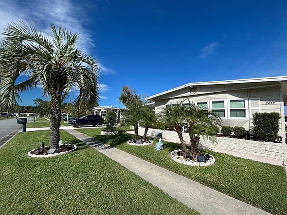 A must see totally renovated in 2024, beautiful 3 bedroom, 2 bath Open floor plan home in a 55+ Community, This home has all new hurricane code windows, Heavy duty sliding glass door, A/C 3 1/2 ton, new ductwork and vapor barrier, laminate floors throughout, kitchen has new cabinets, appliances include refrigerator, stove ,dishwasher, microwave, Large, deep kitchen sink, Beautiful new backsplash, Washer and dryer are in the home making it very convenient, ceiling fans, light fixtures, Master bath has a new shower, sink and toilet. The outside features lush landscaping, Beautiful palm trees, landscape lighting, extra large back yard, Private fenced patio area great for barbecuing and or a hot tub, watch the sunsets from your front porch and features all new railings. 25x10 all weather Florida room great for entertaining, Shed for extra storage, carport & long driveway can host 2 vehicles & motorcycle, roof sealed In 2024, this home is in a no flood zone and was never flooded, there's also a termite bond on the home and it is transferable, This home has been very well kept The owner takes a lot of pride in this beauty & it shows. There has never been any pets or smoking in this home. The community has a beautiful clubhouse with many activities, heated pool, hot tub, lounging area with fire pit. Walking distance to shopping, close to medical, restaurants, gas, and just minutes to the beach, and boat ramps. Why buy a brand new home when you have all of this for less than half the price of a new one. Make this home that's clean & full of pride, your forever home or winter retreat. Owner is motivated, and furniture is negotiable. Lot Rent is $1,228.21 and includes Storm Drain Tax, Pass Thru Tax, Amenities, Lawn Care and internet ALL INFORMATION DEEMED ACCURATE BUT NOT GUARANTEED. Additional fees for amenities may apply. Agent and or Company is not responsible for quoting current monthly fees, lot rent, or dues/fees associated with the community or home. Those figures are the responsibility of the buyer and community manager/owner to obtain/ disclose.