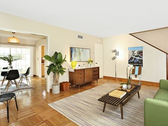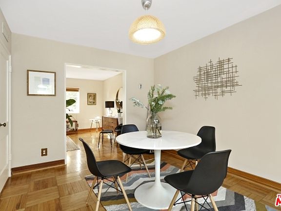 Designed in the Modernist Garden Style, circa 1942 by Architect Reginald D. Johnson, this stunning townhouse is in the historic landmark Village Green. This rare offering is a quiet, courtyard-facing unit far from the street. Downstairs is a spacious living room and dining room that opens to a large patio surrounded by mature trees to create your own urban paradise. Features include an updated kitchen, inside washer/dryer, original parquet + hardwood floors, central air and heat (rare in this complex) and 1 car garage. Upstairs are two generously sized bedrooms and updated bathroom with spa tub & shower. Surrounded by windows on three sides you will feel as if you have left the City. Steps away from the Expo line and the future developments in Culver City and West Adams. Seize the opportunity to own a piece of history that will allow you to live in paradise but walk to everything LA has to offer.