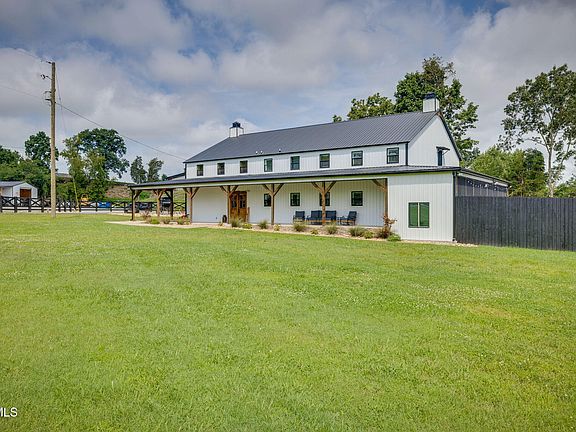 MOTIVATED SELLERS! Whether you're searching for your dream home or an investment opportunity, this property has it all! This one-of-a-kind Airbnb offers a 6600 sq ft custom-built barndominium with 2 car garage sitting on nearly 3 acres in the scenic Tennessee countryside. Plus, a 60x40 detached 3-bay garage/shop. This 5-bedroom, 3-bath layout showcases 32-foot cathedral ceilings and expansive windows that fill the space with natural lighting. A cozy fireplace adds warmth and charm to the main living area, creating an inviting atmosphere for gatherings throughout the year. The master suite is conveniently located on the main level featuring a spacious master bedroom, a full bath with double vanities, a beautifully tiled shower, and a large walk-in closet.