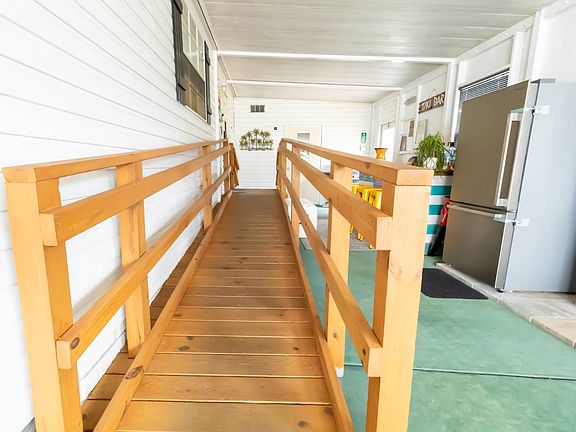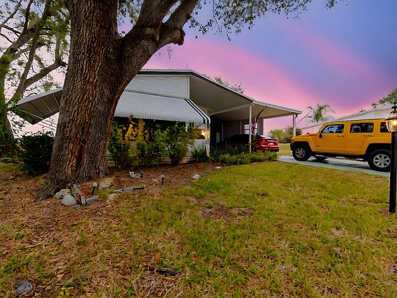 FINAL PRICE ADJUSTMENT, READY TO MOVE RELOCATING!!! READY QUICK CLOSE!! Welcome to this charming 2-bedroom, 2-bathroom home nestled in Kings Pointe, a gated 55+ community in Lake Alfred, Florida. This well-maintained residence offers 1,144 square feet of comfortable living space and is ideally positioned on a curved lot that provides an expansive backyard overlooking an open field. Recent upgrades include new appliances installed within the last two years, modern kitchen flooring, updated ceiling fans, and new toilets. The property comes complete with a unique Tiki Bar in the carport, adding a delightful touch of Florida living. All kitchen appliances, plus washer and dryer, are included with the sale. Kings Pointe offers an exceptional lifestyle with resort-style amenities including a heated swimming pool, hot tub, fitness center, and clubhouse. Residents enjoy access to various recreational activities such as billiards, bocce ball, and shuffleboard. The community features a library, craft clubs, and hosts regular social events, fostering an active and engaging environment. Conveniently located between Orlando and Tampa, this home provides easy access to major attractions while maintaining a peaceful setting among Central Florida's scenic lakes and citrus groves. The pet-friendly community welcomes all sizes of pets (excluding aggressive breeds) and includes RV storage facilities. Current lot rent of $747 includes access to all park amenities, with an annual fire tax fee of approximately $150. This property represents an excellent opportunity to join an established community of 229 home sites, perfect for those seeking an active Florida retirement lifestyle. OUT OF TOWN!?!? NO WORRIES, WE CAN DO VIRTUAL SHOWINGS AND WE ARE ABLE TO DO PAPERWORK REMOTELY. FEEL FREE TO CALL, TEXT, OR EMAIL ME. I LOOK FORWARD TO BEING YOUR RAY OF SUNSHINE AND HELPING YOU CALL YOUR NEW HOUSE A HOME! All listing information is deemed reliable but not guaranteed and should be independently verified through personal inspection by appropriate professionals. Our company does not and cannot guarantee or warrant the accuracy of this information or condition of this property. Measurements are approximate. The buyer assumes full responsibility for obtaining all current rates of lot rent, fees, and pass-on costs. Additionally, the buyer is responsible for obtaining all rules, regulations, pet policies, etc., associated with the community, park, or home from the community/park manager. Our company is not responsible for quoting said fees or policies. Financing is available through 3rd party lenders. Please contact the sales agent for additional information.