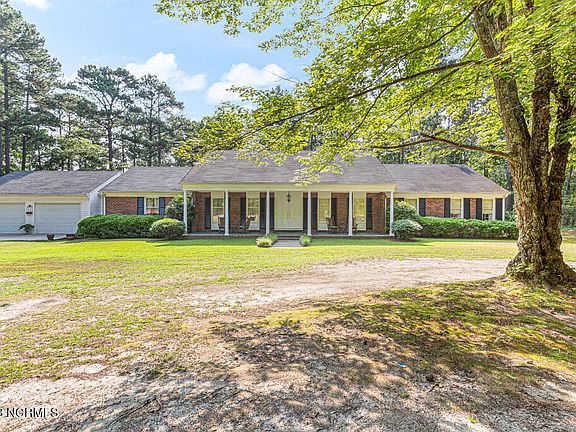 Don't miss this amazing opportunity to own a wonderful all brick, single level, four bedroom and two bathroom home priced $100,000 less than a November 2022 appraisal. This home is in Candor, NC, only 20 minutes outside of Pinehurst, AND is sitting on four acres with two more acres available for purchase. This home is priced to sell! This single level home offers privacy yet is just a few minutes from restaurants, the post office, a bank, and schools. The home features hardwood floors, a living room and a den, a formal dining room or the perfect home school classroom, an office, a breakfast nook, crown molding, built in bookcases, TWO fireplaces, a security system, intercom system, multiple pocket doors, plus the spacious master suite offers a large walk-in closet, plus two additional closets, and a tile walk in shower and a soaking tub too. The terrific kitchen includes all of the appliances, double ovens, plenty of countertop space for cooking, a built-in desk, a convenient laundry room with utility sink sitting just off the kitchen and so much more. The seller has just updated two areas of carpet, painted multiple rooms to neutralize the color palette in the home, painted all exterior trim and is replacing a few failed windows in the next few weeks. This home also features a slate rocking chair front porch, a spacious backyard and patio, a circular driveway along with plenty of parking options, an oversized two car garage, attic storage, a shed and all this sitting on a very private and beautiful four-acre lot. Looking for more land & privacy? The buyer will have an opportunity to purchase two additional acres sitting on either side of the home AND the four acres where the home sits. The house & four acres are just outside the city limits so you pay NO city taxes! Don't miss this wonderful home at a fantastic price!
