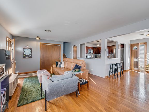 Freshly painted three bedroom, two bath open concept style split level brick home with two & a half car garage. Beautiful hardwood flooring throughout main level with open flow kitchen, updated shaker style cabinets & backsplash, granite countertops, an island with extra storage, and breakfast bar. Separate dining area opens to living room with large windows providing plenty of southern exposed natural light! Spacious family room in the lower level off of the kitchen with wood burning all brick fireplace and additional storage. Three sizable bedrooms and two full bathrooms. Large laundry area and drop zone space leading to attached two & a half car heated garage with brand new garage door and large back yard beautifully landscaped with a decorative arbor & fence on the east side of property. Brand new hot water heater and brand new water pump for boiler heating system. This home is well taken care of and move in ready!