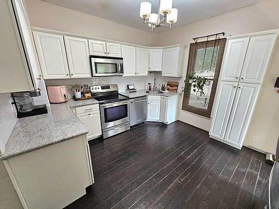 Hot on the market is this charming home featuring 3 bedrooms, 1 bath, main floor laundry, and a very large dining and living area. The spacious kitchen features beautiful granite countertops and comes equipped with a stainless dishwasher, microwave, range, and refrigerator. The main floor laundry/mud room includes the washer and gas dryer. Upstairs you will find a loft/landing area that can be used as a reading nook or office space along with two additional good-sized bedrooms. This home sits on a large half acre lot with a generous portion already fenced in for your furry friends or a safe play area for the kids. There is a large detached 2 car garage along with a 2-story barn for your workshop and storage needs. Purchase with a piece of mind as the home comes with a well-kept Trane furnace & central air, gas hot water heater, an updated electric panel and wiring, and all new windows and screens with a transferable lifetime warranty from Hansons.