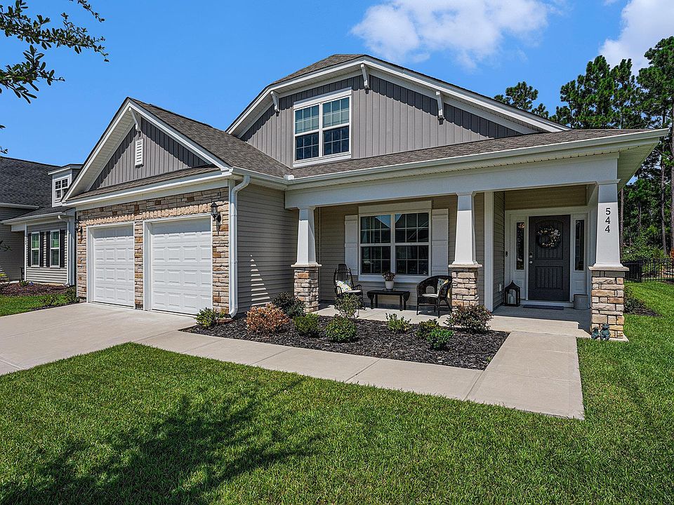 Welcome to a home where thoughtful design meets everyday comfort—perfectly located in one of the Grand Strand’s most desirable communities. This beautifully appointed 3-bedroom, 2.5-bath home with a versatile bonus room offers the ideal blend of style, functionality, and privacy. Step onto the charming front porch and immediately feel the warmth and elegance that continues throughout the home. Just off the entryway, a flexible space awaits—perfect for a formal dining room, home office, or peaceful study. The main living area impresses with architectural ceiling beams, large windows that flood the space with natural light, and a cozy gas fireplace that anchors the room with inviting charm. Designed for both entertaining and everyday living, the gourmet kitchen features an oversized quartz island, a designer tile backsplash, five-burner gas cooktop, built-in wall oven and microwave, and a generous eat-in area with views of the backyard. Whether you’re hosting friends or preparing a family meal, this space delivers both beauty and efficiency. The spacious first-floor primary suite offers a private retreat with a luxurious tiled shower, soft-step walk-in tub, dual vanities, and a large walk-in closet. Luxury vinyl plank flooring flows through the main level, while tile adds a durable, upscale finish to every bathroom. Upstairs, you’ll find two additional bedrooms, a full bath, and a cozy loft—ideal for a media room, play area, or secondary living space. Attic access ensures ample storage for seasonal items and extras. Step outside and discover your private outdoor oasis. The screened-in back porch features a second gas fireplace for year-round comfort, and the adjacent paved patio is perfect for grilling or relaxing under the stars. The fully fenced backyard is ideal for pets or children, and the in-ground sprinkler system keeps your lawn looking its best with minimal effort. Behind the home, a wooded buffer provides natural privacy and a peaceful backdrop rarely found in neighborhood living. Additional highlights include a two-car garage, wood-tread stairs, custom window treatments by Budget Blinds, upgraded lighting throughout, and a whole-house Generac generator for added security during storms. Energy-efficient features such as a 15 SEER HVAC system and R-38 ceiling insulation help lower your utility bills year-round. Enjoy a prime location just minutes from top-rated dining, boutique shopping, grocery stores, golf, and entertainment. With Highway 31 close by, you’ll have quick and easy access to everything the Grand Strand has to offer—from North Myrtle Beach to Murrells Inlet and beyond. This is more than just a home—it’s a private sanctuary designed to elevate your lifestyle. Schedule your showing today and see why this home stands out from the rest.