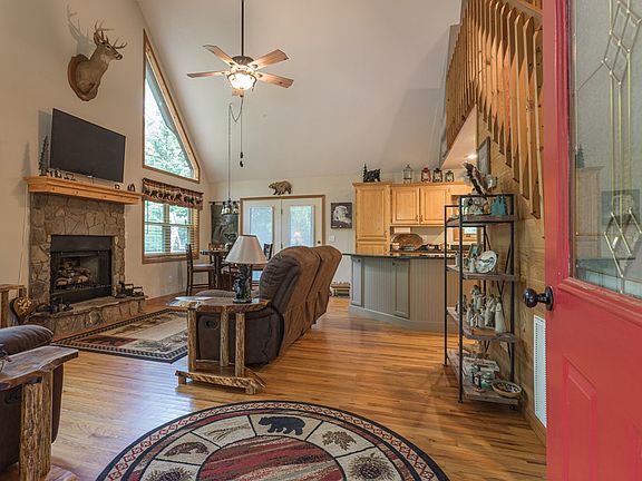 Welcome Home to this captivating 2-bedroom, 2-bathroom, partially furnished chalet Nestled in the serene and quiet Country Mountain Ridge neighborhood. This home offers the perfect blend of modern connectivity and nature's tranquility. Enjoy lightning-fast fiber optic internet as you step into the expansive living area, which has plenty of natural light, high ceilings, and a gas log fireplace. The spacious kitchen comes complete with an island and granite countertops that effortlessly balance functionality and style. Upstairs is the sprawling loft-style master bedroom, full bath and closet. A generously sized second bedroom and full bath cater to guests or loved ones, ensuring comfort for all. Step outside onto the grand porch, which wraps around three sides of the house, providing ample space for outdoor living. A Full Length screened-in area allow you to savor the gentle breeze while staying shielded from the elements. A pet-friendly fence graces the gentle lot, offering a safe haven for your furry companions to explore and play freely. The roof and windows were recently replaced for peace of mind and energy efficiency! Don't miss your chance to own this charming chalet – a harmonious blend of modern convenience, natural beauty, and peaceful living.