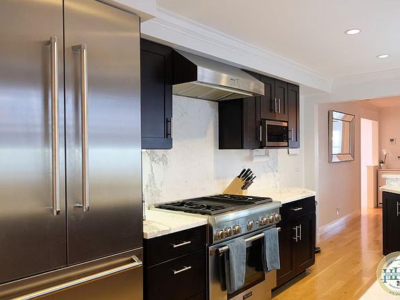 -Professional chef's kitchen with stainless appliances including Thermador range and refrigerator