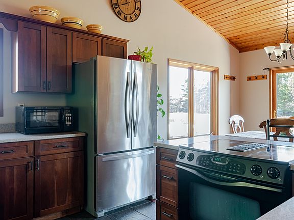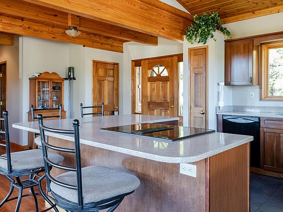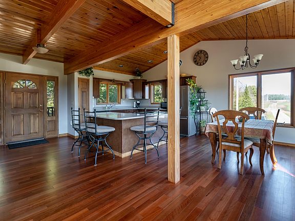 Come home to the quiet! This prow-front cedar Post & Beam home sits proudly on 6+acres of open field and meadow offering tranquility & local wildlife in abundance. The open concept design includes a kitchen with solid wood cabinetry, tile flooring, black & stainless appliances, recessed task lighting, a composite sink, a large breakfast bar & Silestone counter tops. The dining area includes a sliding door to the large front deck. The family room has a cathedral ceiling & windows on two stories that bring in lots of natural light. A wood burning stove in the family room is great for taking the chill off on cooler evenings. Two bedrooms served by a full bath & laundry area on the main level add flexibility to the floor plan. A second slider out to the deck from the larger bedroom on the main level adds appeal & utility. Brazillian Cherry flooring in the family room and main travel areas adds beauty and charm. New red oak treads on stairs to the loft area provide a nice finished look. The open loft master bedroom includes a large walk in closet with plenty of room for storage and a full en suite bath that includes both a garden tub and shower. Radiant heating on the main level and master bath add warmth under foot. So many nice features in this home! We hope that you will enjoy the virtual tour and will come to see it in person very soon.
