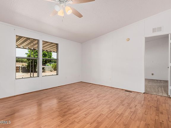 Affixed manufactured home with NO land lease or HOA! This charming property in Mesa features brand new carpet in the bedrooms, a newer roof (2021), and a recently serviced AC. All big-ticket items already taken care of! Inside, you'll find vaulted ceilings, wood-look flooring, and an open layout filled with natural light. The kitchen offers abundant cabinet space, an island and tile backsplash, ready for your personal touches. The spacious primary suite includes dual sinks, a soaking tub, and separate shower. Enjoy easy outdoor living with a covered patio and low-maintenance landscaping. Fantastic location near shopping, dining, and more!