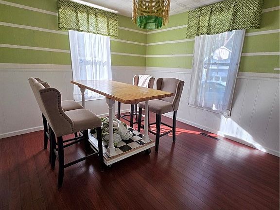 For rent at $2,000 per month, this spacious 3-bedroom, 1.5-bath home offers plenty of charm and versatility. The first floor features a bright open living space with polished floors and a bonus room that can serve as a first-floor bedroom, office, or cozy reading nook with endless possibilities. The dining room is large enough to accommodate a family, and the kitchen showcases a stylish white and coffee-themed wallpaper that will delight any coffee lover. A convenient half bathroom and laundry area are also located on the first floor, with a washer and dryer available for purchase or removal if you prefer to bring your own. Upstairs, you will find three generously sized bedrooms along with a full bathroom. Outside, the home sits on a large lot with a peaceful backyard that is almost fully fenced in, along with a wooden deck featuring built-in seating that will be freshly painted soon. A one-car garage is located on the property but is not included with the rental. Water and sewer are paid by the owner, while all other utilities will be the tenant's responsibility.