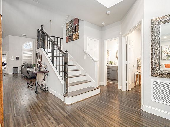 Experience luxury living in this beautifully remodeled, turn-key home featuring exceptional upgrades throughout. Bamboo flooring flows across the main living areas, complemented by quartz countertops, a custom iron staircase, and a chef’s kitchen with pot filler, double oven, built-in microwave, custom hood vent, under-cabinet lighting, and tiled backsplash. Enjoy smart-home features, upgraded electrical with surge protection, and built-in surround sound indoors and out. All game-room items convey. The resort-style backyard offers an in-ground pool, gazebo with TV and lighting, outdoor shower, 8-ft privacy fence, and three storage units. Ideally located near parks, shopping, restaurants, and major highways—this home blends elegance, comfort, and convenience in one stunning package.