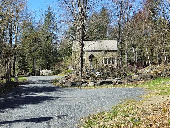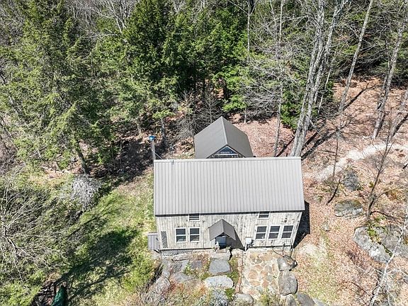 Nestled in a sunlit meadow amongst stone ledges and mature woodlands sits a very special home. Built in 2004 on 12+ acres, this home with its exposed wood interior feels like a treehouse. With character and artistic touches at every turn, this rustic 2 bedroom 2 bath home has an open floor plan design to bring air and light into the space. The main level features the kitchen/dining/living areas, the upper level has the primary bedroom, bath and reading nook, lower level has 2nd bedroom, bath and workshop/laundry. Relax in the post & beam screen porch and take in the forest view while you strum a guitar, nap in a hammock, or visit with family and friends. Enjoy a cup of tea at the dining room table while you admire the perennial gardens outside the window. Cozy up in the loft with a good book, or pull up a chair by the wood stove. Finally, look up to the roofline and see the property's iconic dragon weathervane keeping watch over all. More than a home, this property is a lifestyle.