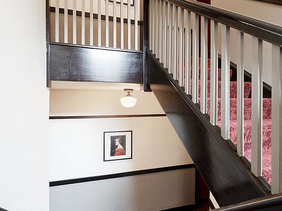 Large studio unitsBright red entry doorsCourtyard building