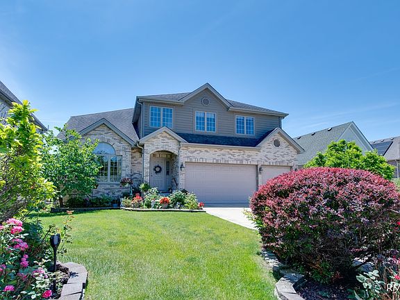 Welcome to this beautiful home that offers a 3 car garage, 5 bedrooms plus first floor office, 5 full baths, and first floor laundry room. Step out into the backyard where a charming oasis awaits you. This fully fenced (maintenance free vinyl) backyard offers newer Trex decking with new pool and liner (2023) and serene views as the home backs up to an open field. Just steps away to a children's park and grade school. This open concept home offers hardwood floors throughout with ample storage space. The very large master bedroom will be your retreat and includes a spacious walk-in closet. The luxurious master bathroom offers a jacuzzi tub, separate shower, double vanity sinks with an additional vanity. The other 3 bedrooms are all generous in size with one of the bedrooms being an additional ensuite. The second floor also has a large loft which can be used as an additional office space or entertainment area. The kitchen boasts of granite countertops, double ovens and maple cabinets which opens into the large family room with a beautiful stone fireplace. The home also includes a walk out basement which is full of natural light and offers porcelain tile, brick fireplace, exercise area, 5th bedroom, full bathroom with shower and has hook up for bar. With 4 year old furnaces and 3 year old AC units, this home ensures comfort and efficiency. This house is truly everything you want if you enjoy entertaining with family and friends.
