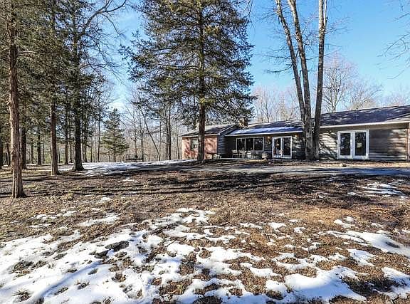 Secluded 15 acres joining conservation and near Sam A. Baker State Park, large windows,. Brick and wood house with 2-br,2-1/2-baths, family room, 2 fireplaces, vaulted ceilings, bricked floors, patios, 24 X 28 detached garage with country kitchen and 12' lean-to. Paved circle drive, wooded acreage and 30 x 48 shed. Great location.