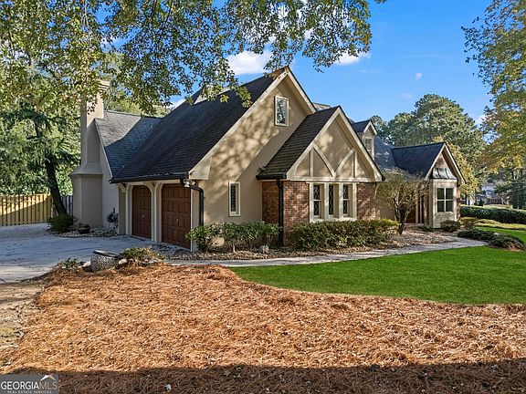 Experience timeless elegance in this stunning English Tudor-style 5-bedroom, 5-bathroom ranch home with a fully finished basement, situated on a spacious corner lot in the prestigious Peachtree Station neighborhood of Peachtree Corners. This beautifully maintained residence features a brand new Gunite saltwater pool and a thoughtfully updated interior, blending classic Tudor charm with modern convenience. The expansive master suite offers vaulted ceilings and a spa-like, fully renovated bathroom with a luxurious double shower. The oversized kitchen is a true centerpiece, featuring rich brick accents, stone countertops, a cozy keeping room with a fireplace, and a sunlit breakfast area. The newly finished terrace level offers full in-law or Au Pair suite potential with a full kitchen, gorgeous bathroom, bedroom, laundry hookups, private exterior entrance, and a chair lift for added accessibility. Additional highlights include a bright sunroom, vaulted ceilings throughout, a HUGE dining room open to the family room, an RV parking pad (perfect for recreational vehicles or outdoor play), and a spacious front yard. Located in one of Peachtree Corners' most active and friendly swim/tennis communities-with optional membership and no mandatory HOA-this home offers an unbeatable lifestyle. Just steps from the 223-acre Simpsonwood Park and the Peachtree Corners YMCA, and minutes from the newly revamped Forum, Town Center, fantastic dining, shopping, and lively summer concerts. Zoned for top-rated schools, including Simpson Elementary, Picnkneyville Middle, and Paul Duke STEM, with prestigious private schools nearby. This is more than a home-it's a lifestyle. Don't miss your chance to own one of the finest homes in Peachtree Corners. Schedule your private tour today!