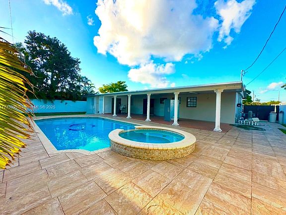 Welcome to this beautiful home located in the highly sought-after area of Miami Gardens, just minutes away from shops, supermarkets, and schools! This spacious property features 4beds/3baths, including two master suites, one of which offers the potential to be converted into an efficiency for rental income. Step outside to your own private oasis – the home boasts a sparkling pool, a well-maintained patio, and a covered patio area perfect for outdoor dining and relaxation. The home has been freshly painted, offering a clean and modern aesthetic throughout. With a convenient circular driveway, parking is a breeze. The seller is offering seller financing with only 25% down, making this a fantastic opportunity. 2022 Roof – don’t miss out on this exceptional home in a prime location!