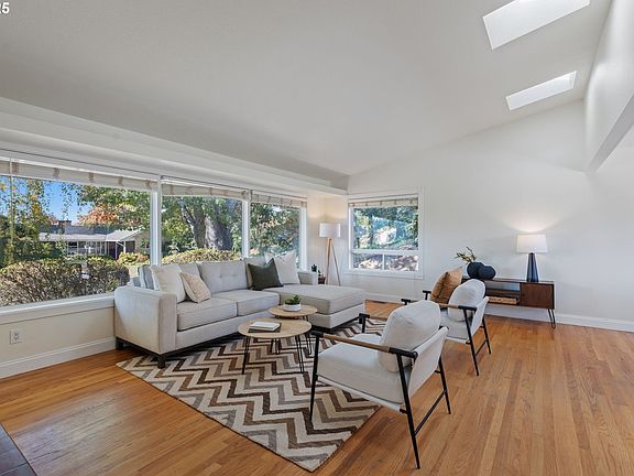 Perched up off the street at the edge of Raleigh Hills in the well kept "secret" pocket neighborhood of Hemstreet Heights, this 50's rancher is waiting for you. Step into that light and airy feeling that vaulted ceilings, XL windows, and skylights delivers so well. There's no shortage of classic 50s feeling and vibes, from the hardwoods throughout to the brick fireplaces but the good bones don't end there...with an updated kitchen, multiple exits to the expansive deck and backyard, and great layout, this home will serve you well for decades to come. Downstairs you'll find another fireplace and media/bonus room that's perfect for spooky season movie nights! The hits just keep coming in the form of the large fido-friendly backyard just waiting for your green thumb. Calm and tree-lined streets of the neighborhood and easy access to parks aplenty are just begging for afternoon strolls and rolls through the wide streets. All that's missing is you!