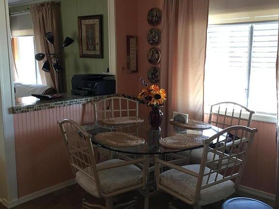 Very nice, well maintained home w/split bedroom floor plan. Spare bedroom in front has half bath --master bedroom in back. Open living room, kitchen and dining area. Kitchen has new cab and all new appliances with built-in microwave.Home is furnished. Enjoy sitting on the enclosed screened porch. Side yard is fenced in wood. Front has pavers. Easy care yard. HOA fee includes unlimited golf, tennis, pickle ball,shuffleboard, 3 pools, spa, exercise room, trash collection and more. You own the land.