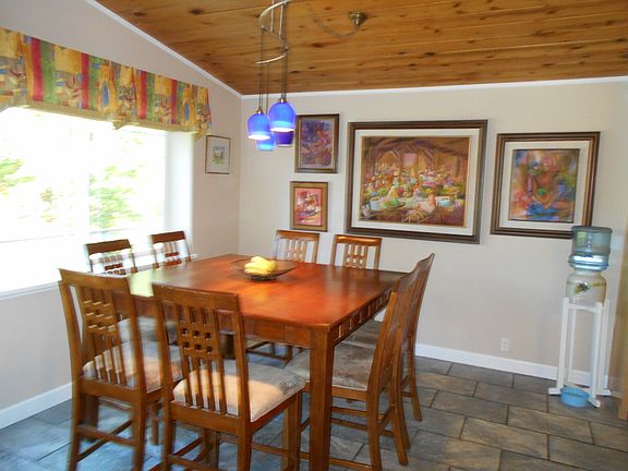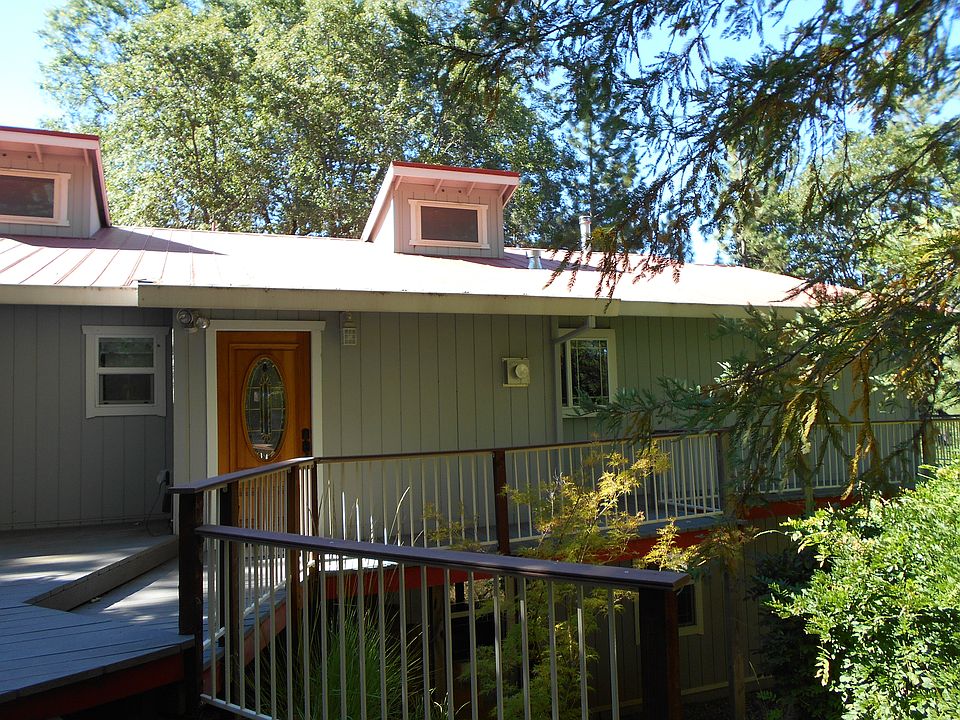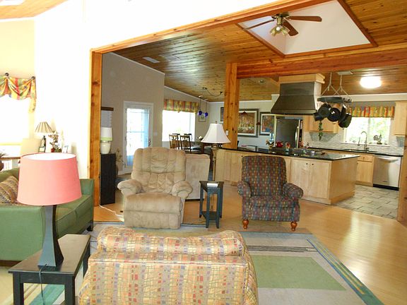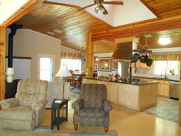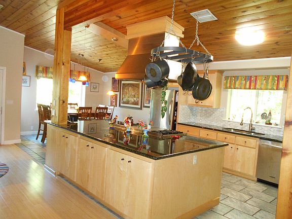 Tranquil Setting. Newer upgraded kitchen with granite counter tops & plenty of room to cook. Bathrooms have been nicely remodeled. Open floor plan with great views & lots of windows. Master bedroom with sunny sitting area. Three bedrooms downstairs with a separate family room & sun room. Enjoy the beautiful landscaping with plenty of areas to relax & enjoy the sun or shade if that is what you prefer. Shard pond at the bottom of the property. Two water tanks. Fenced in garden & yard .