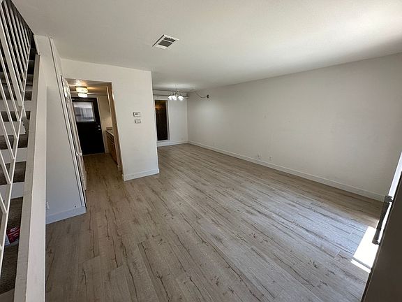 2 bed 1.5 bath, B unit, apx 973 sq ft. Newer paint and vinyl plank flooring throughout. Large living room with dining room. Half bath downstairs. Central air conditioning and forced air heating. Carport parking. Community pool and laundry. Close to shopping.
