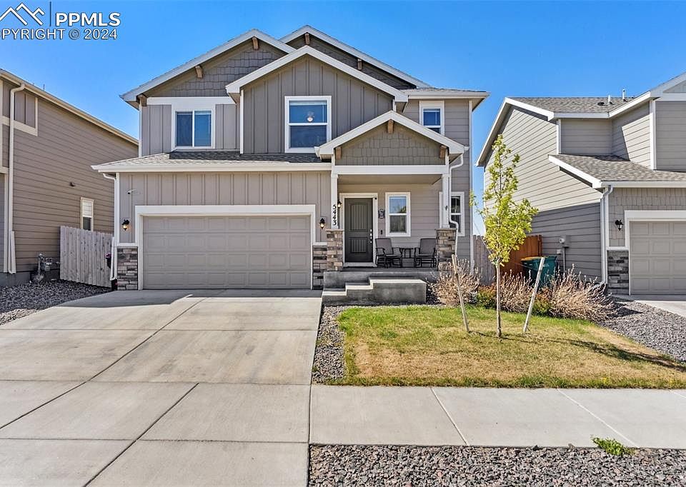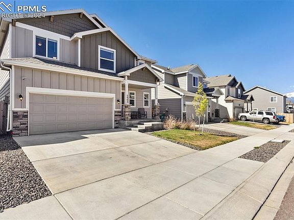 Welcome to The Ridge at Sand Creek, where luxury living meets everyday convenience! Step into this charming 4-bedroom, 2.5-bathroom home with a two-car garage.. Upon entry, the warm embrace of wood laminate floors guides you from the foyer to the kitchen and dining room, setting a cozy tone throughout. The open layout effortlessly connects the kitchen to the spacious living room, creating an inviting space for gatherings or relaxed family time. The kitchen is a chef's delight, equipped with stainless steel appliances, a functional island, and a captivating view of the majestic mountains. Step outside to the fenced backyard, a private oasis with stunning mountain vistas. Backing to open space, this home offers both serenity and scenic beauty. A convenient crawl space accessible from the main level provides additional storage options. A half bath on the main level adds to the convenience. Upstairs, the primary suite beckons with its generous walk-in closet and ensuite bathroom, offering a tranquil retreat for rejuvenation. Three additional bedrooms, a full bathroom, and laundry space complete the upper level, ensuring comfort and functionality for every household member. Discover the perfect blend of functionality and elegance in this delightful home. Situated close to Powers Blvd amenities including dining, shopping, health clubs, hospitals, parks, and more, this home offers a lifestyle of convenience. Commuting to Peterson SFB, Schriever SFB, and Fort Carson is a breeze, with a quick drive to downtown COS adding to its appeal.