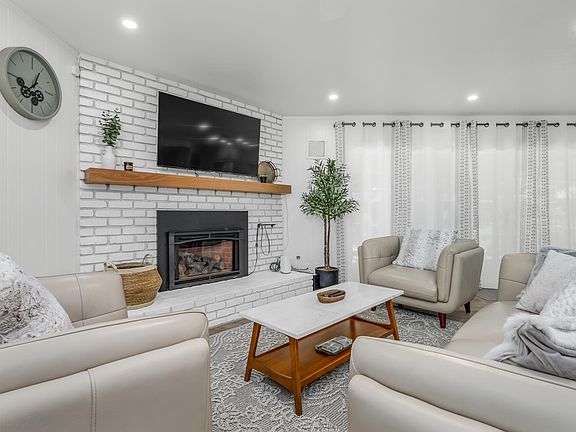 Unwind by the brick fireplace in the open living area, graced with beautiful hardwood floors, or step outside & soak up the fresh air on the patio, equipped with a BBQ grill & shady pergola.