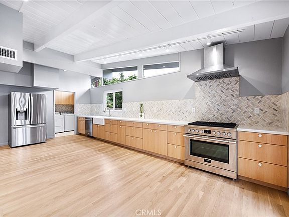 - Beamed Ceilings, Cathedral Ceiling(s), Eat-in Kitchen, High Ceilings, Open Floorplan, Recessed Lighting, Storage, Track Lighting, Galley Kitchen, Utility Room