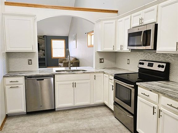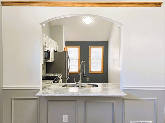 Recreation roomStone wallBuilt-in entertainmentBig deckFront covered porchStainless steel appliancesFenced backyard