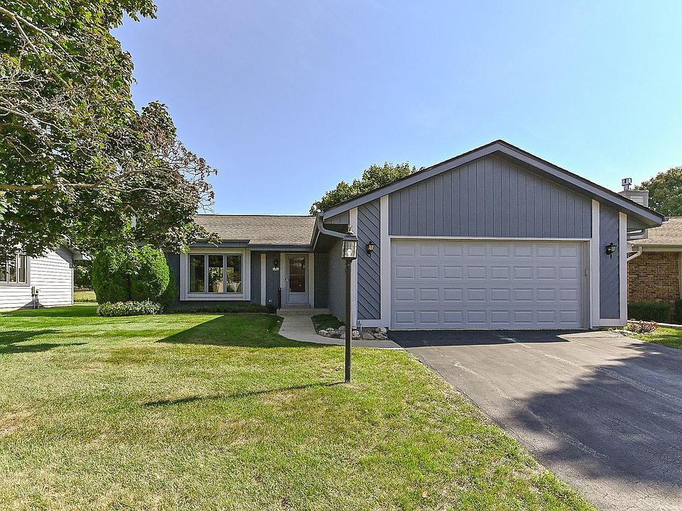 Free standing single family ranch condo overlooking pond! Open concept has great room with gas fireplace and cathedral ceiling! Formal dining area. first and/or lower level laundry - Currently set up in lower level. Rec room with wet bar plus 3rd bathroom and home office. Open stairway to lower level. Both full baths on main floor have skylights. Glass block basement windows. Concrete patio. Home warranty included.