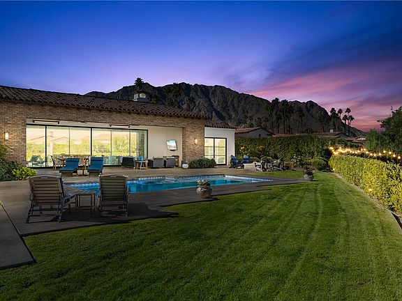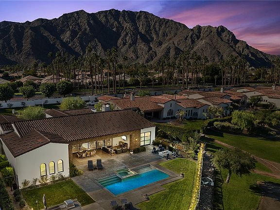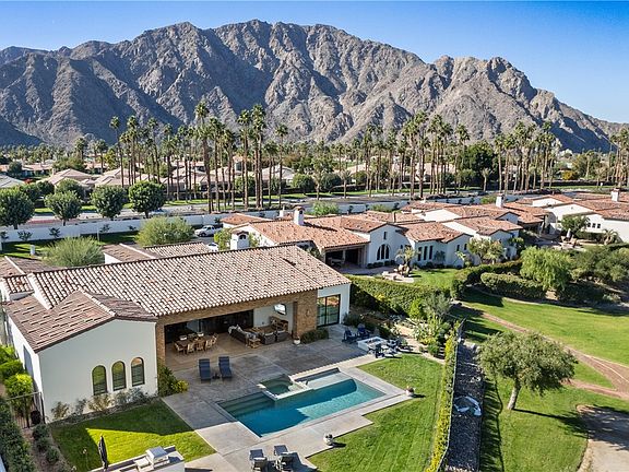 Stunning desert luxury living at its finest in the prestigious PGA West Golf Club, affectionately known as the ‘Western Home of Golf in America’ where sophistication meets comfort in this exquisite 3-bedroom, 4-bathroom residence, complete with a separate en suite guest casita. As you enter this distinguished property, you'll be captivated by the seamless blend of elegance and modern design. The outdoor space is a true oasis, boasting an enticing outdoor kitchen featuring a 42" built-in burner, pizza oven and a wok style round power burner perfect for entertaining guests against the backdrop of gorgeous Santa Rosa Mountains. Step into the primary bedroom, where opulence awaits, the custom molding feature wall in the primary bedroom and the marble herringbone wall in the primary bathroom are both true works of art, setting the tone for the luxurious retreat. Pamper yourself in the spa-like atmosphere, complete with a custom-built cedar walk-in closet providing ample storage for your wardrobe. The home is not only a masterpiece in design but also prioritizes security with a state-of-the-art home security system, ensuring peace of mind for you and your loved ones. Whether you want to enjoy the cool evenings around the outdoor firepit, or stay warm under the patio heating system, you'll surely enjoy many wonderful outdoor dinners and entertainment all year round. The indoor/outdoor speaker/TV system allows you to set the perfect ambiance for any occasion, whether watching your favorite team or movie in surround sound, or simply playing your favorite music in one room or throughout the entire house. The indoor kitchen is a chef's dream, featuring high-end Thermador appliances, Restoration Hardware cabinet pulls, a double oven, tons of storage, a large custom walk-in pantry and a beautiful large kitchen island that serves as the heart of the home. Every detail has been carefully curated with custom tile and stonework throughout, creating a harmonious blend of textures and tones. This residence is not just a home; it's a statement of refinement and luxury. Direct access to walking trails & putting greens from backyard! Country Club membership sold separately. EARTHQUAKE & FIRE insurance included in HOA as well as exterior paint, roof & pool equipment, landscaping and gardening. **Seller is offering a credit for the 1st year of monthly HOA dues!! **
