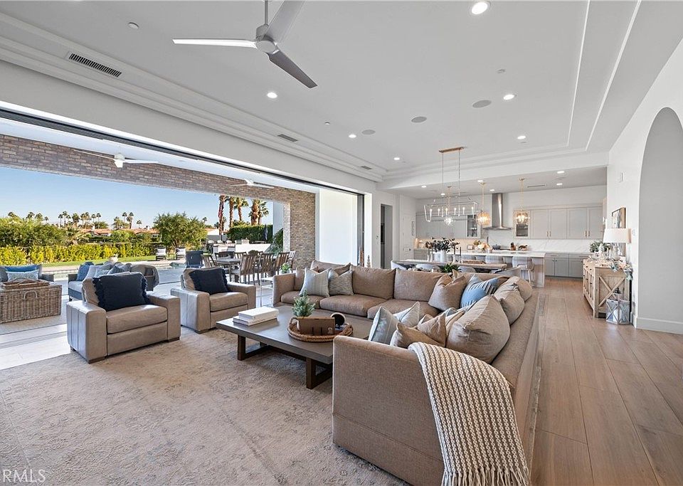Spa-like atmosphereSanta rosa mountainsPrimary bedroomMarble herringbone wallRestoration hardware cabinet pullsOutdoor kitchenThermador appliances
