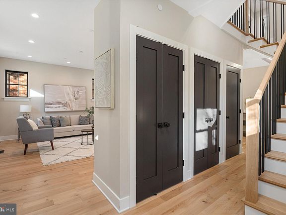 Reimagined, expanded, and masterfully redesigned, this exceptional new construction in Chevy Chase, DC, seamlessly blends timeless Colonial charm with clean, modern sophistication. Curated by JDM Design Studio, the interiors strike a perfect balance between classic elegance and contemporary comfort, ideal for today's lifestyle. The main level welcomes you with beautifully finished wood floors and a thoughtfully designed layout, featuring a comfortable formal living room, an elegant dining room, a butler's pantry, a whimsical powder room, and a spacious walk-in pantry. A charming side entry hall enhances the flow and functionality of the space. The heart of the home is a stunning gourmet kitchen outfitted with high-end appliances and designer finishes, opening seamlessly to a large family room. Sliding doors lead to a large rear deck overlooking a fenced backyard and a 12' x 20' off-street parking pad, pre-wired for an EV charger. Upstairs, the second level offers three generously sized bedrooms and three full bathrooms, including a luxurious primary suite with a spa-like bathroom and two expansive walk-in closets. A dual-entry laundry room adds everyday convenience. The third-level loft is a true showpiece, featuring 14-foot ceilings, a spacious second family or media room, two additional bedrooms, two full bathrooms, and a covered rooftop deck with a wood-paneled ceiling, perfect for relaxing or entertaining while enjoying sweeping rooftop and treetop views. The walk-out lower level provides even more flexible living space, complete with a full bedroom, 1.5 bathrooms, a large recreation room, a second laundry area, and a mudroom with direct access to the backyard and parking pad. Ideally located just five blocks from the shops, dining, and amenities of Connecticut Avenue, and only three blocks from Lafayette Elementary and Broad Branch Market, this beautifully crafted home offers refined design, generous space, and an unbeatable location in one of DC's most desirable neighborhoods.