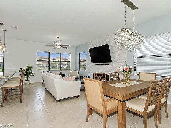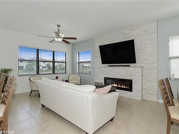 Stunning home, meticulously kept, and priced to sell. Upgrades, upgrades, upgrades, this home is like a model home for this community. From double granite counter tops, tall cabinets, stainless steal appliances, beautiful kitchen hanging lights, automatic rollover kitchen curtain, hidden cable connection for TV in the Master room and guestroom, 18 x 18 inches floor tile on main level, Gorgeous stone accent wall with Fire Place, and the best of all....stairs and second floor laminated wood flooring - Brunnelli floor laminate (Italy) with 25 years warranty; grey and white. Ave Maria is have a family living style and offers multiple amenities for all ages. With easy access to I-75 and dog parks, run/bike trails, restaurants, Publix Supermarket, brand new CUBE SMART storage facility, gas station and many more to detail. The Club at Maples Ridge will give you the sense of resort vacations where you live.